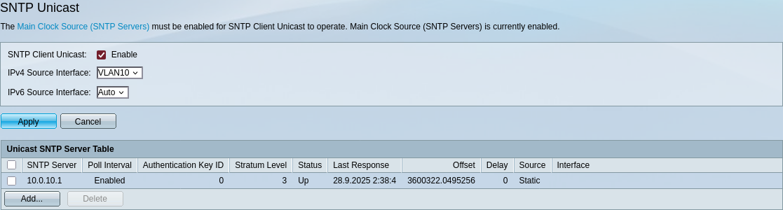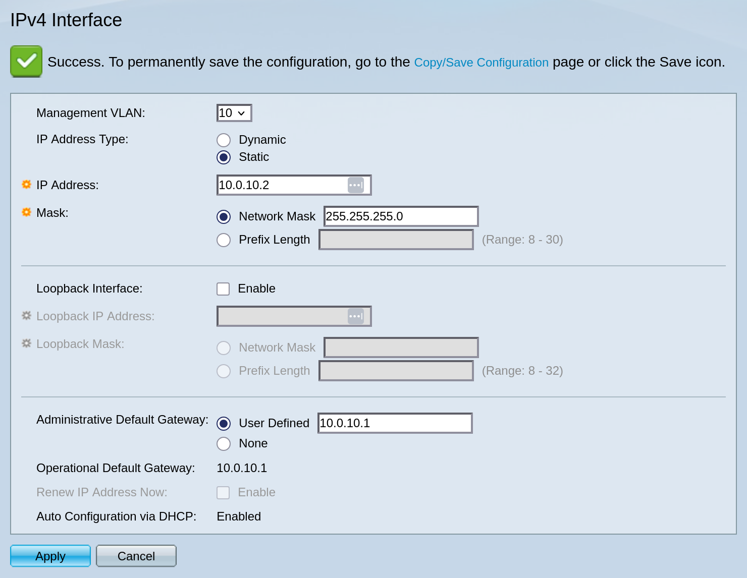 We will keep the management IP static in order to be easily able to SSH into the switch even if something is wrong with our DHCP server.