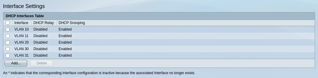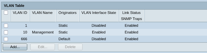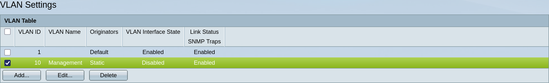 Now back at the webUI make sure the only VLAN interface enabled on the switch is for VLAN 10.