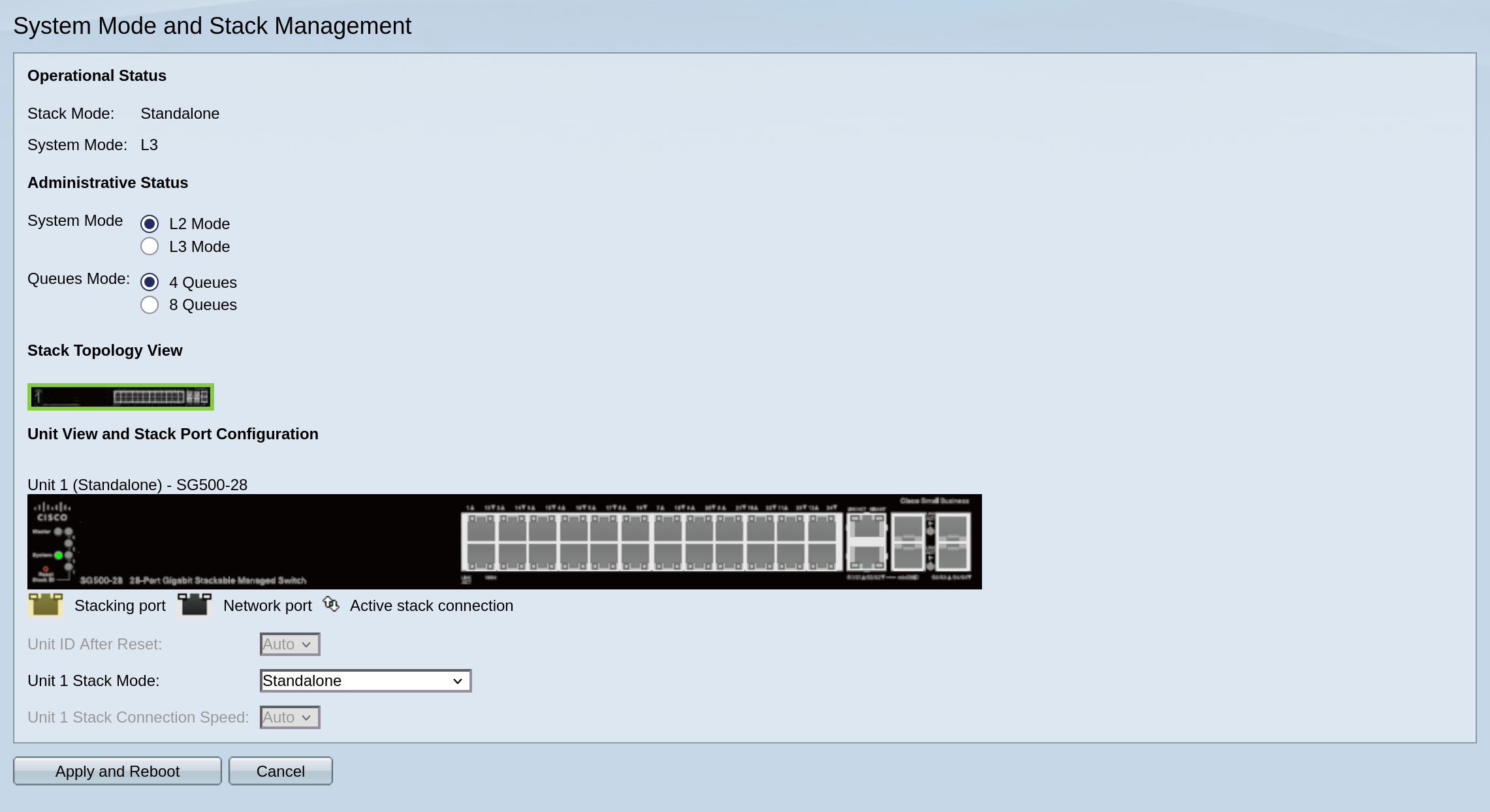 First thing you want to do is set the system mode (L2 or L3) and the stack mode.
