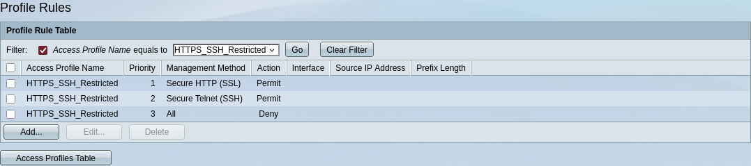 There are some specific ACLs provided for management access. Let’s configure some rules for good measure.