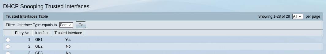 Finally, I will enable DHCP Snooping and set my interface connected to pfSense as a Trusted interface, leaving the rest untrusted.