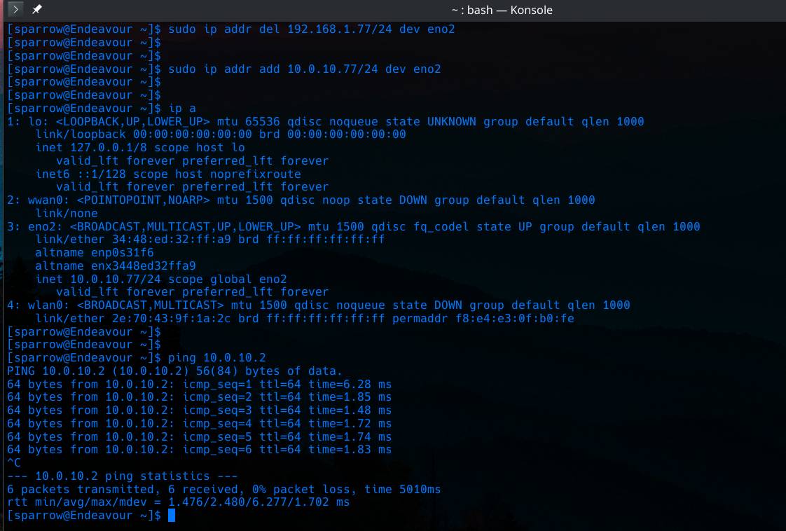 Let’s assign a new IP in the proper subnet and test connectivity.