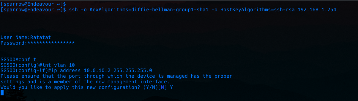 Okay, in all seriousness these are weak/deprecated specifications for an SSH connection, but since it’s in the homelab (isolated management VLAN) and not exposed to the internet, we can live with the risk for now.