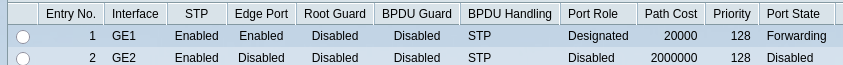 Regarding Spanning Tree Protocol(STP), we can see that the switch has correctly identified the edge ports automatically.